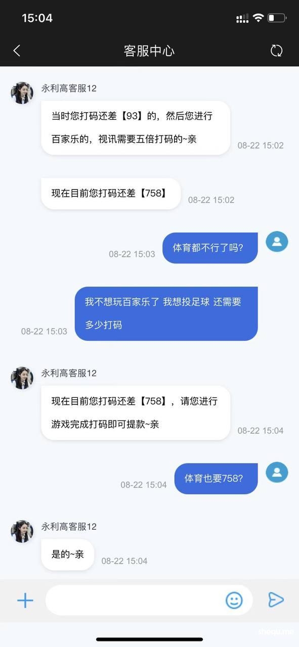 客服又说真人需要打满5倍流水,我说我回去玩体育,现在又说体育还差758流水才能提款。